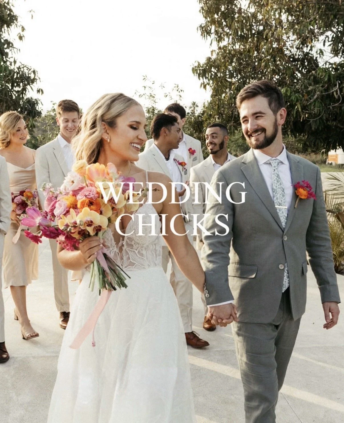 The couple always knew they wanted their wedding in Cabo to be colorful and fun. Because of this, Carolyn wore a wedding dress with a floral pattern on it that was then incorporated into their invitations and signage.